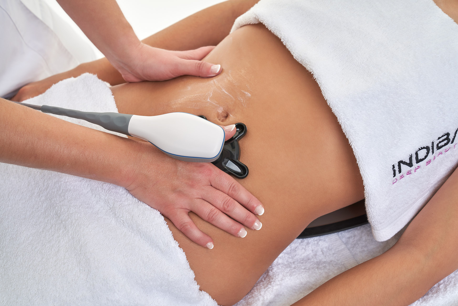 インディバは、医療現場でも使用されるほど安全性が高く、効果のある高周波が体のが体の深くまで加温することができます。局所の施術でも全身が温まります。